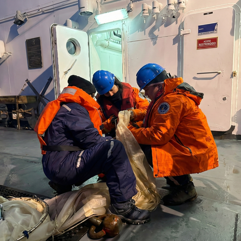 Como parte del proyecto “Monitoreo de larvas de eufausidos”, un equipo de investigadoras argentinas y peruanas realizó jornadas de recolección de muestras a bordo del B.A.P. Carrasco durante la primera fase de la campaña científica antártica peruana (ANTAR XXXII).
