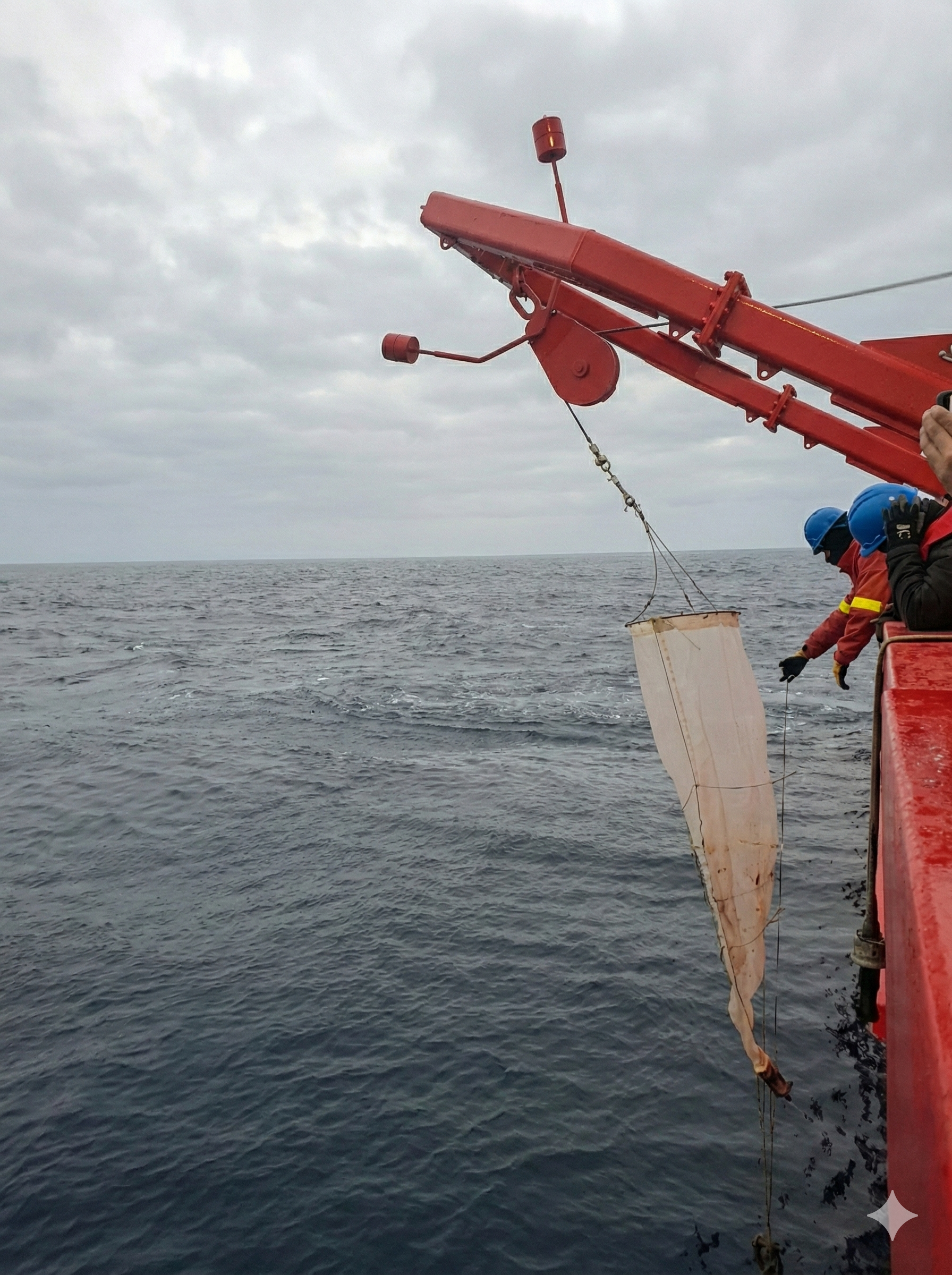 Para la obtención de las muestras se utilizó una red WP2, herramienta clave para recolectar larvas en la columna de agua. El objetivo principal fue monitorear las etapas iniciales de vida de estos organismos y entender cómo se relacionan con las condiciones oceanográficas del ecosistema antártico.