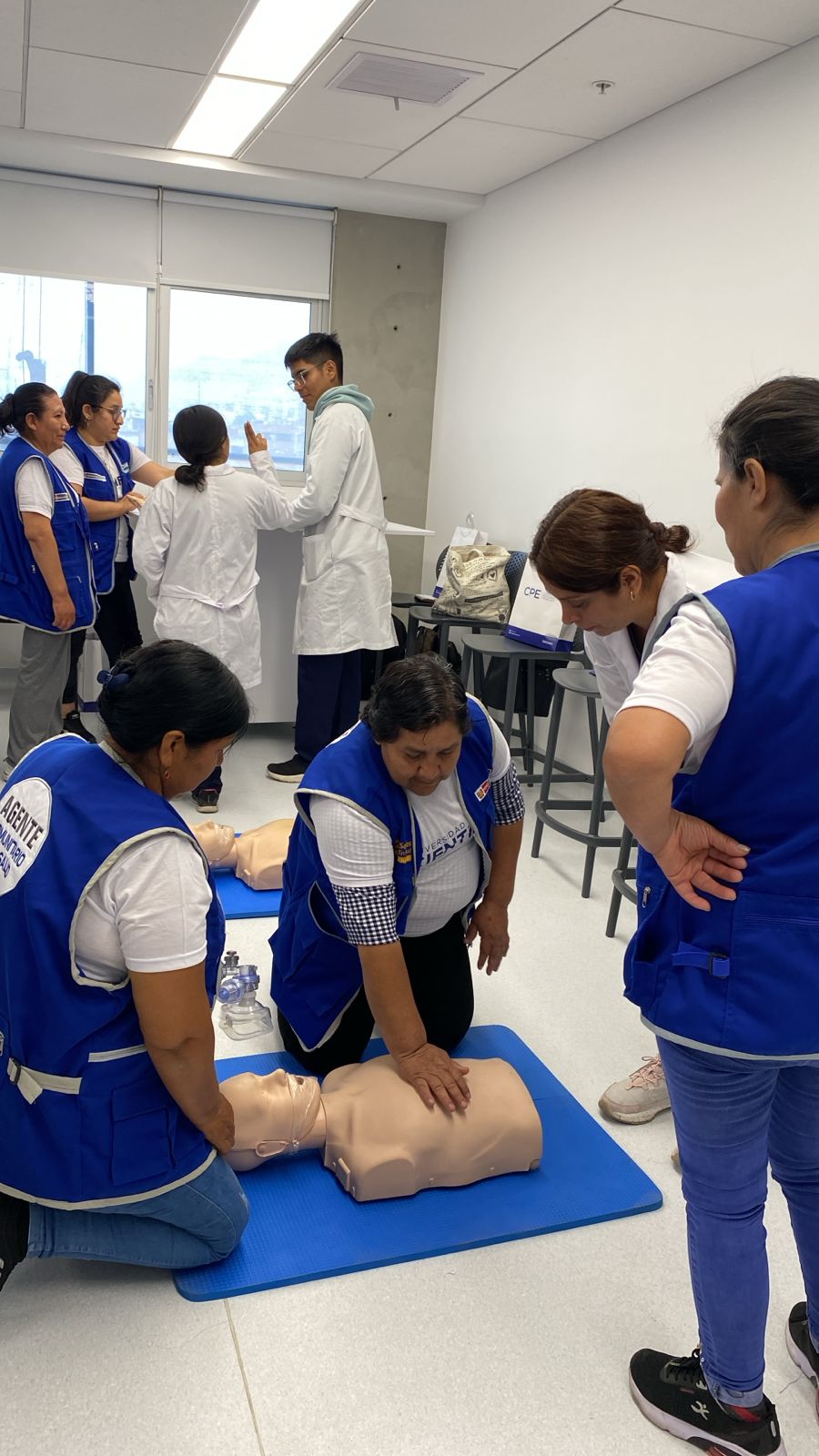 Un grupo de docentes de la Universidad Científica del Sur, de la unidad de responsabilidad social universitaria (RSU) de programa de Medicina Humana, impartió un programa de entrenamiento simplificado en reanimación cardiopulmonar (RCP) para agentes comunitarios de salud (ACS) de diferentes distritos de Lima, para poder reforzar sus capacidades elementales de pronta respuesta ante situaciones de emergencia.