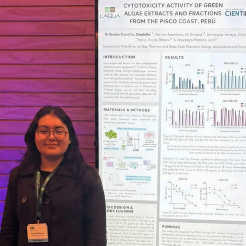 – Cytotoxicity activity of green algae extracts and fractions from the Pisco coast, Peru, de autoría de la investigadora asistente Daniella Orihuela.