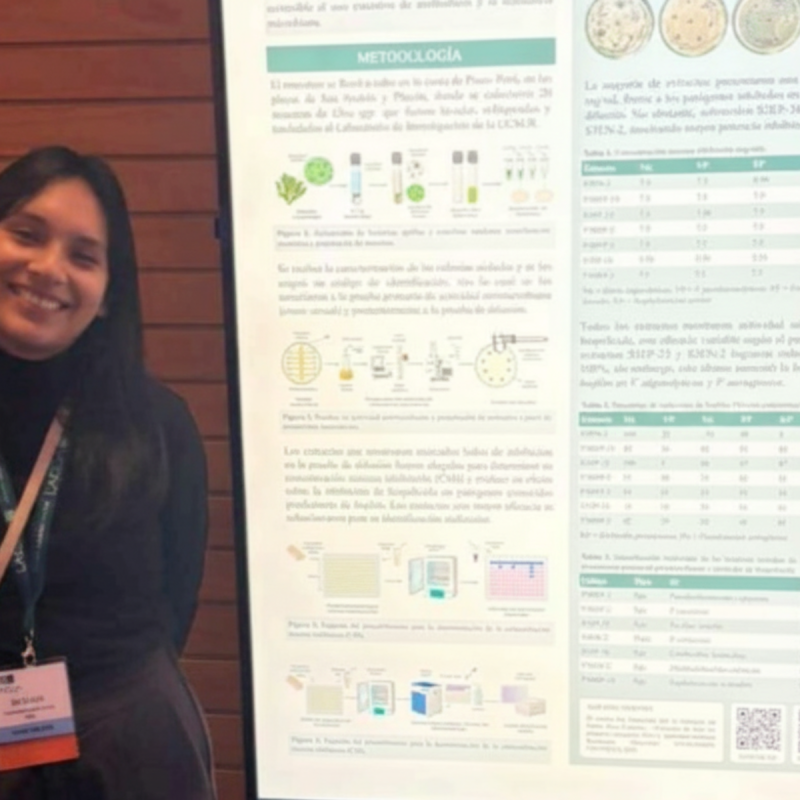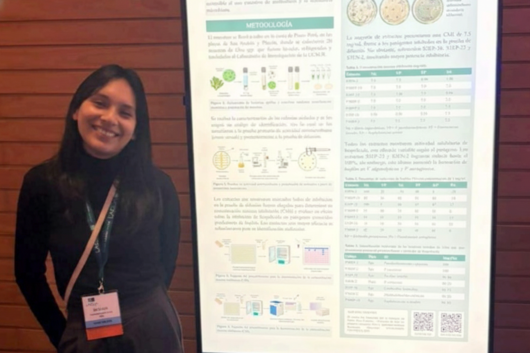 – Análisis preliminar de bacterias epífitas con potencial probiótico aisladas de Macrocystis pyrifera en la costa de Pisco-Ica, Perú, de autoría del estudiante Sebastián Samamé.