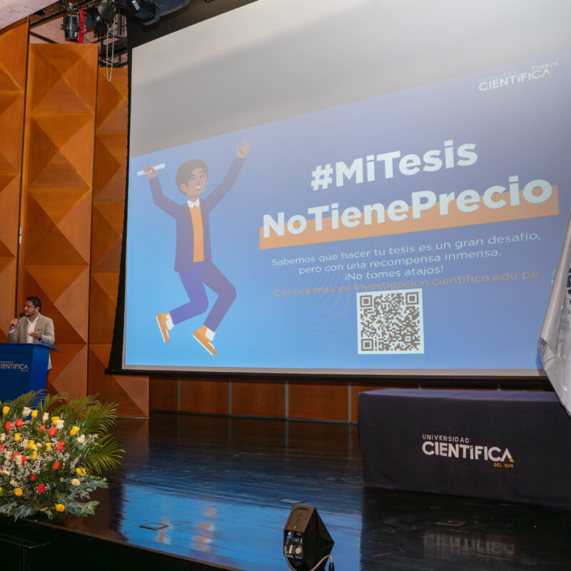 El evento se realizó en el auditorio del Campus Lima Norte de la Universidad Científica del Sur el martes 16 de diciembre. Contó con la presencia de Percy Mayta Tristán, Vicerrector de investigación; Ann Chanamé, Directora de Investigación; Denisse Aguilar, Directora del Departamento Académico de Estomatología en posgrado; Cesar Ordoñez, Director del Departamento Académico de Ciencias Económicas; así como los decanos Marilyn Montejo, Decana de Nutrición; Doris Gonzales, Decana de Enfermería; Maria Lourdes Velarde, Decana de la Carrera de Medicina Veterinaria y Zootecnia; Pilar Sanz, Decana adjunta de la carrera de Educación y Omar Ramirez, Decano de la carrera de Farmacia y Bioquímica. Los asesores de tesis de los ganadores también estuvieron presentes, así como responsables de investigación de diversas carreras académicas.