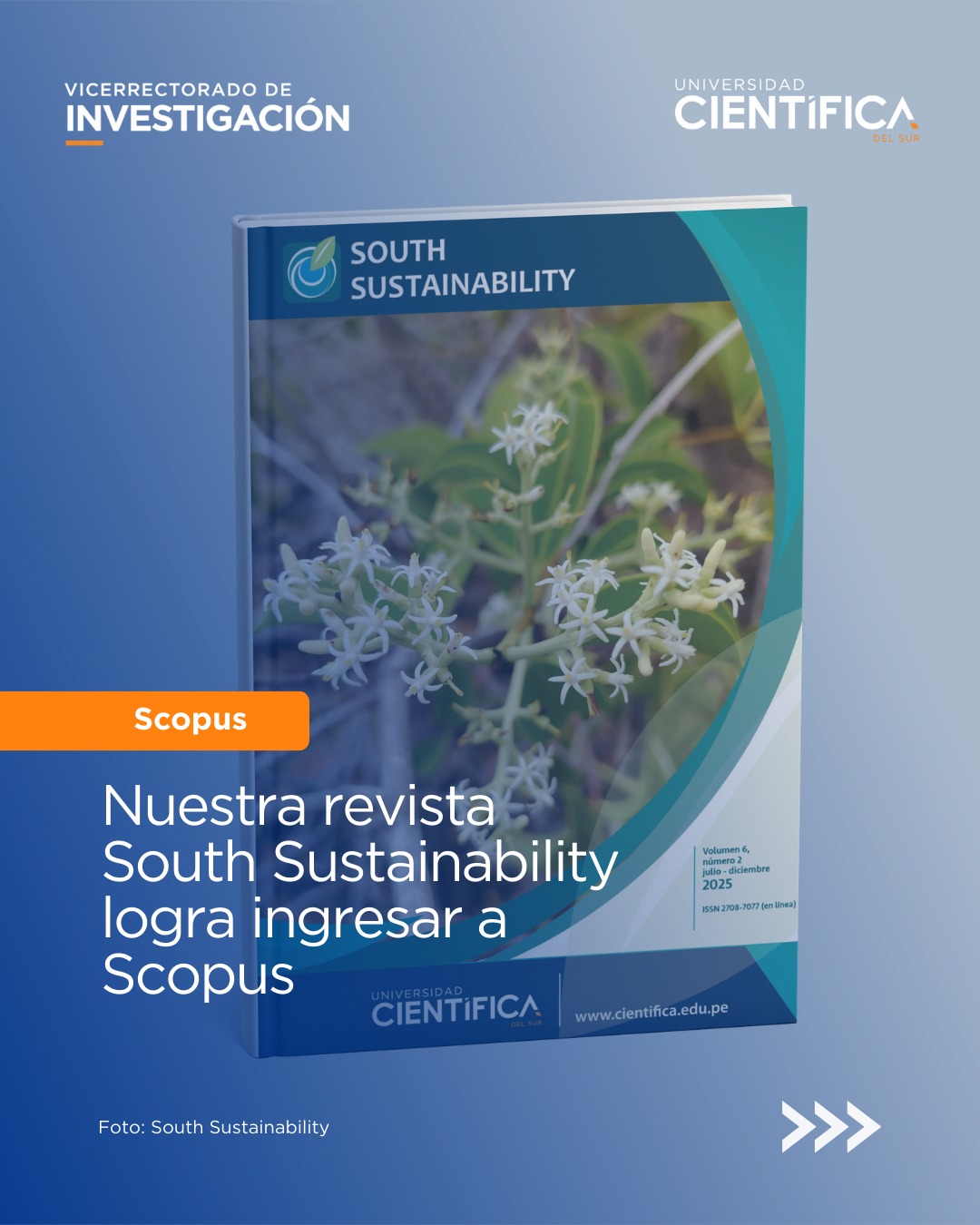 La revista científica South Sustainability, editada por la Facultad de Ciencias Ambientales de la Universidad Científica del Sur, ha sido indexada en Scopus, una de las bases de datos bibliográficas más prestigiosas y exigentes del mundo académico. Este reconocimiento consolida a la publicación como un referente en investigación sobre sostenibilidad ambiental a nivel regional e internacional.